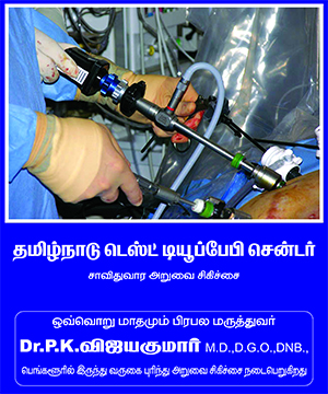 நமது லேப்ராஸ்கோபி சென்டரில் பெங்களூரை சேர்ந்த பிரபல லேப்ராஸ்கோபி அறுவை சிகிச்சை நிபுணர் Dr.விஜயகுமார் M.D.,O.G., அவர்கள் தலைமையில் அறுவைசிகிச்சை ஒவ்வொரு மாதமும் நடைபெறுகிறது .